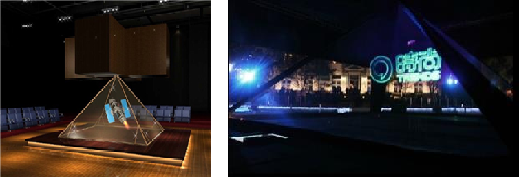 180°大型全息表演,高達四米,寬度可無限長的超大型全息表演裝置,可在空間中呈現色彩絢麗、畫面清晰、效果震憾、奇幻靈動、逼真的立體影像。