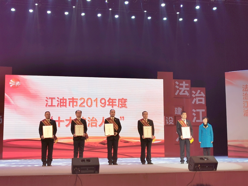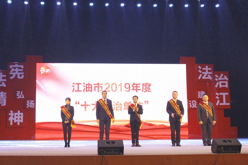 12月4日,江油市舉行了2019年度“十大法治單位”“十大法治人物”頒獎(jiǎng)典禮, 江油市委常委、政法委書(shū)記、市委全面依法治市委員會(huì)副主任李海,市人大副主任李山,市政府副市長(zhǎng)、公安局局長(zhǎng)宋進(jìn)勇,市政協(xié)副主席毛彬出席活動(dòng)。市級(jí)各部門(mén)、鄉(xiāng)鎮(zhèn)主要負(fù)責(zé)人,司法和行政執(zhí)法部門(mén)干部職工代表,企事業(yè)單位干部職工代表,教師、學(xué)生以及群眾代表700余人參加了活動(dòng)。