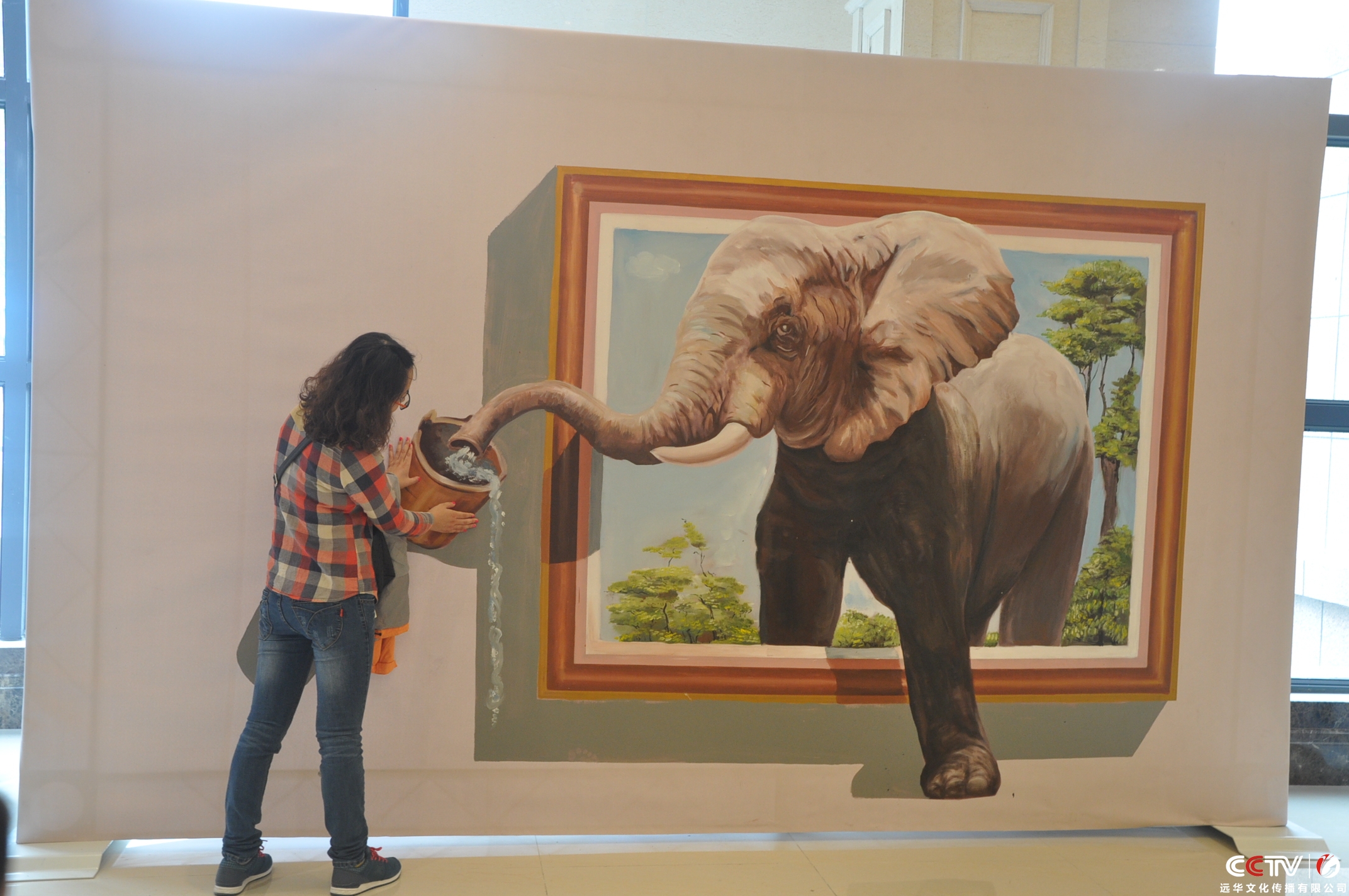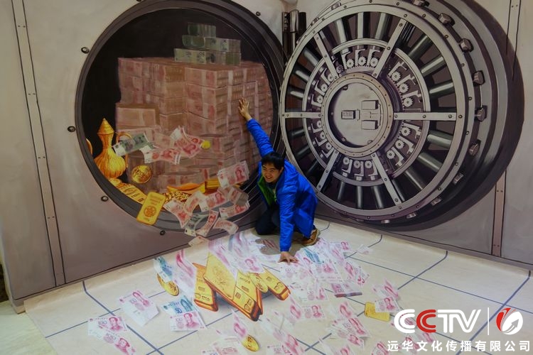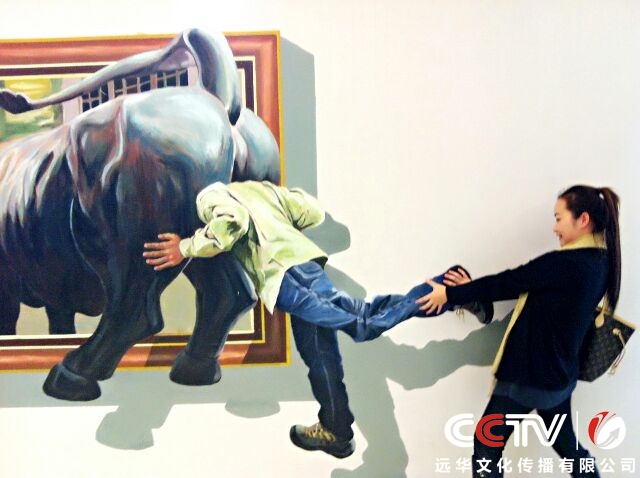 3D畫解析:是以地面或墻面為媒介,利用平面透視的原理,制造出視覺上的虛擬立體效果,令參觀者有一種身臨其境的感覺。3D畫在國內流行的時間并不長,但因其極具震撼力的視覺沖擊力,所到之處都引發參觀者的熱情“圍觀”。