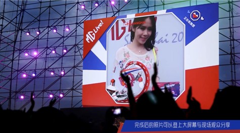照片會同時出現(xiàn)在現(xiàn)場以及其他地區(qū)的大屏幕上,觀眾輸入手機(jī)號后還會收到自己照片的鏈接頁面,在手機(jī)的頁面可以下載照片,以及分享照片到自己的社交網(wǎng)絡(luò)。以此來表達(dá)對于MG品牌的熱愛。